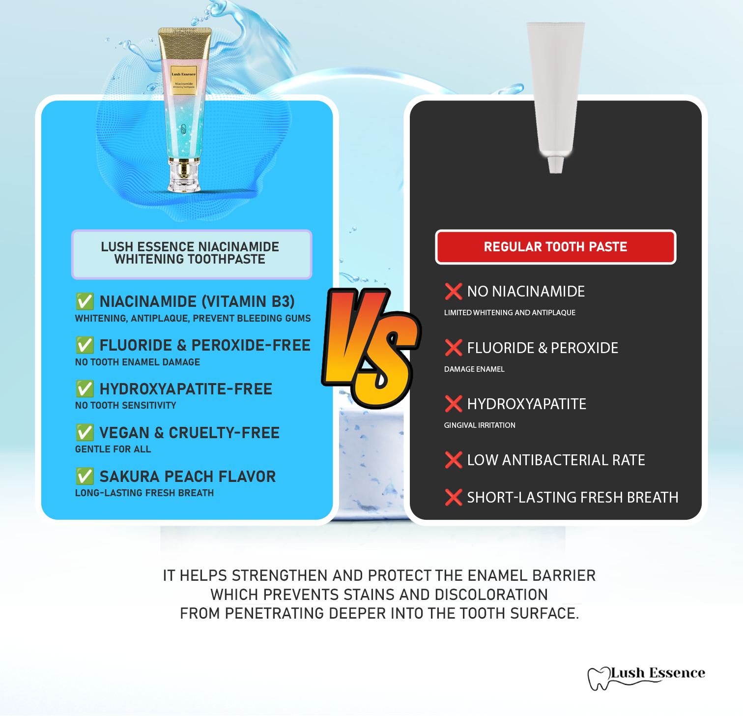 Experience the ultimate whitening power with Ggvtrend Niacinamide Toothpaste—removing stubborn stains naturally, providing all-day fresh breath, and promoting healthy gums without fluoride, all while delivering a luxurious cherry blossom peach fragrance!
